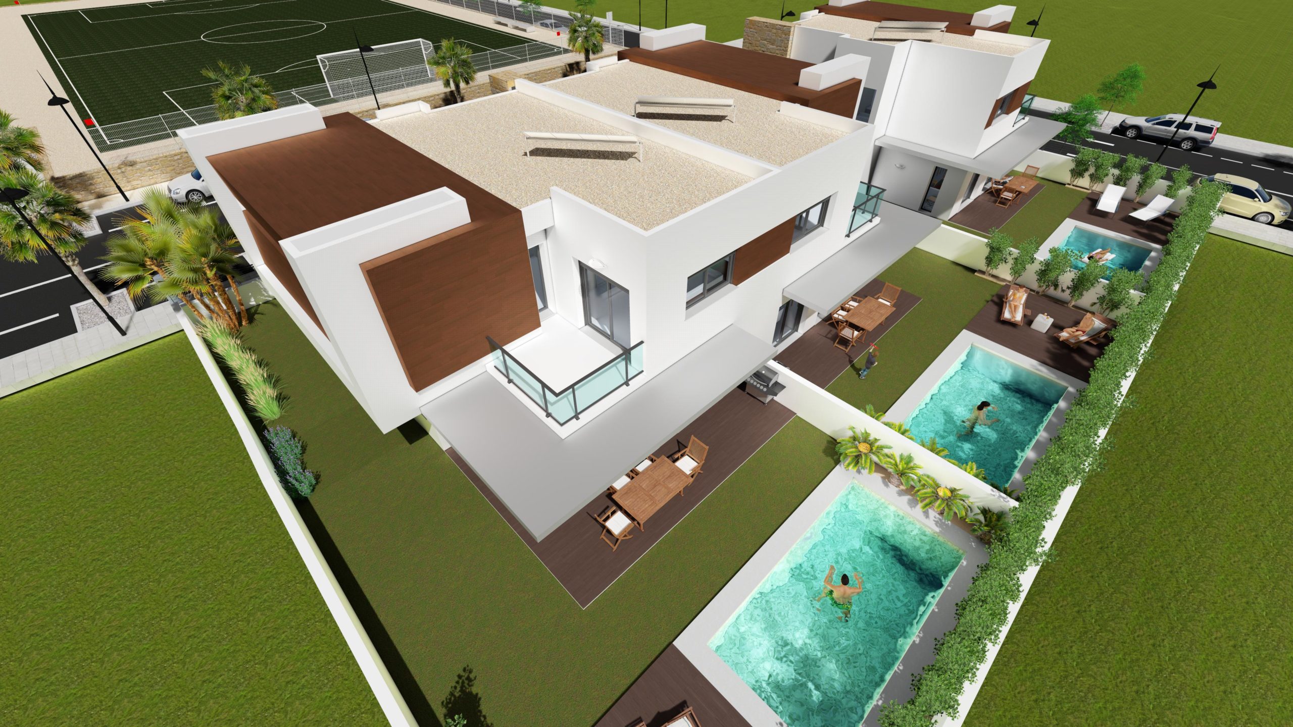 Descripción: La Residencia Colectiva en Fines está formada por chalets adosados con una estética moderna y minimalista, reflejo del estilo MAD. Cada vivienda dispone de piscina e interiores diseñados al milímetro, fusionando funcionalidad y sofisticación. Un conjunto arquitectónico exclusivo que ofrece confort, elegancia y armonía en cada detalle.