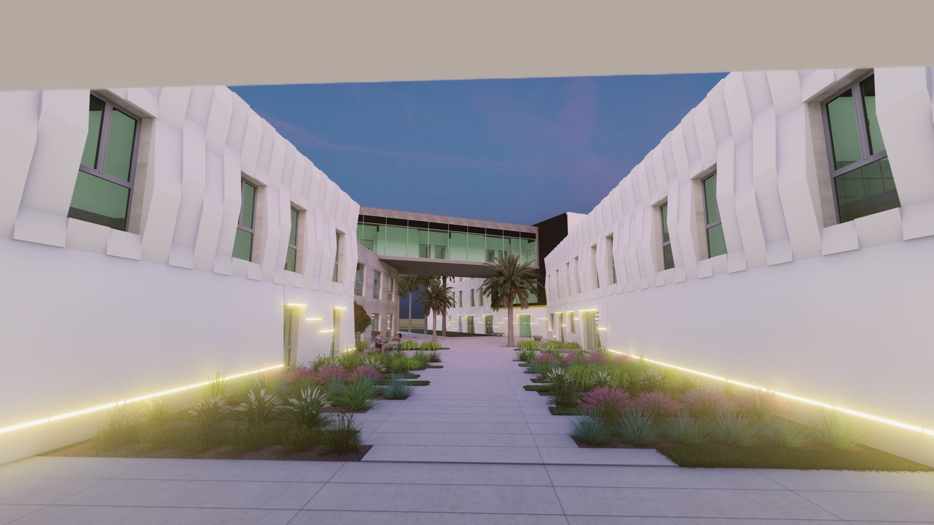 Descripción: La Residencia de Mayores La Cañada de San Urbano refleja la esencia de MAD con su estética minimalista y moderna. Superficies blancas, elementos de madera y amplias zonas ajardinadas se combinan con elegantes filas de luces LED que realzan su fachada exterior.