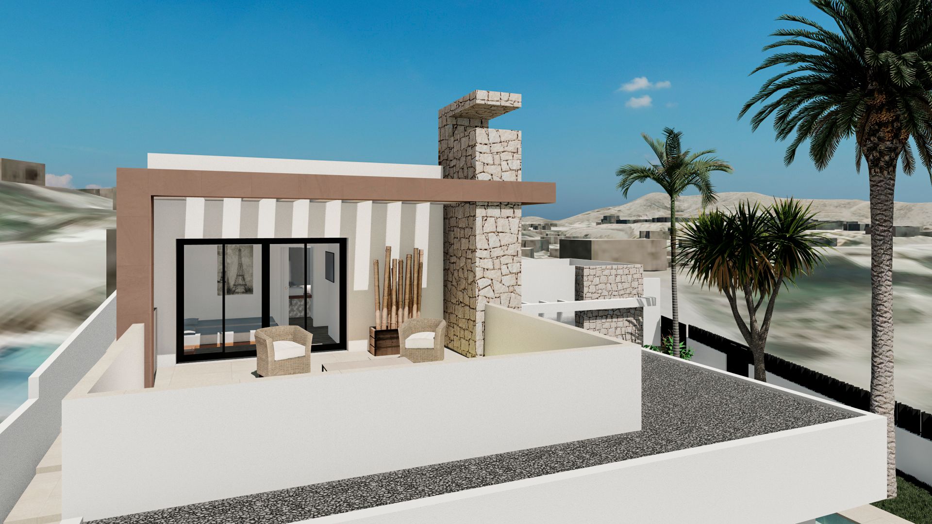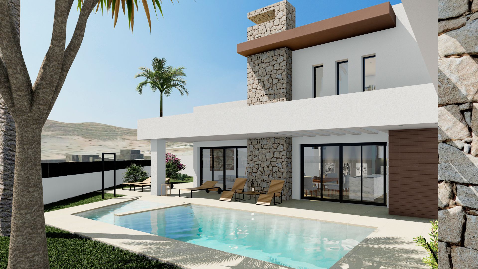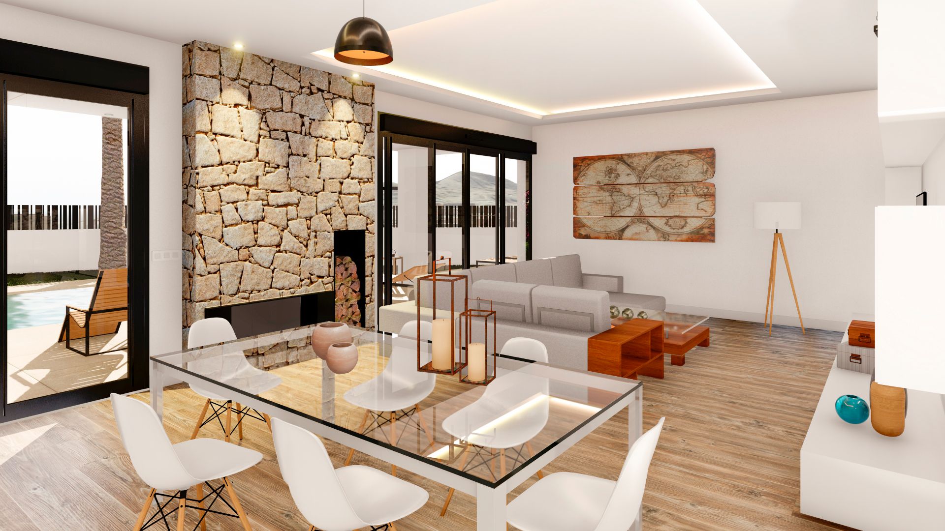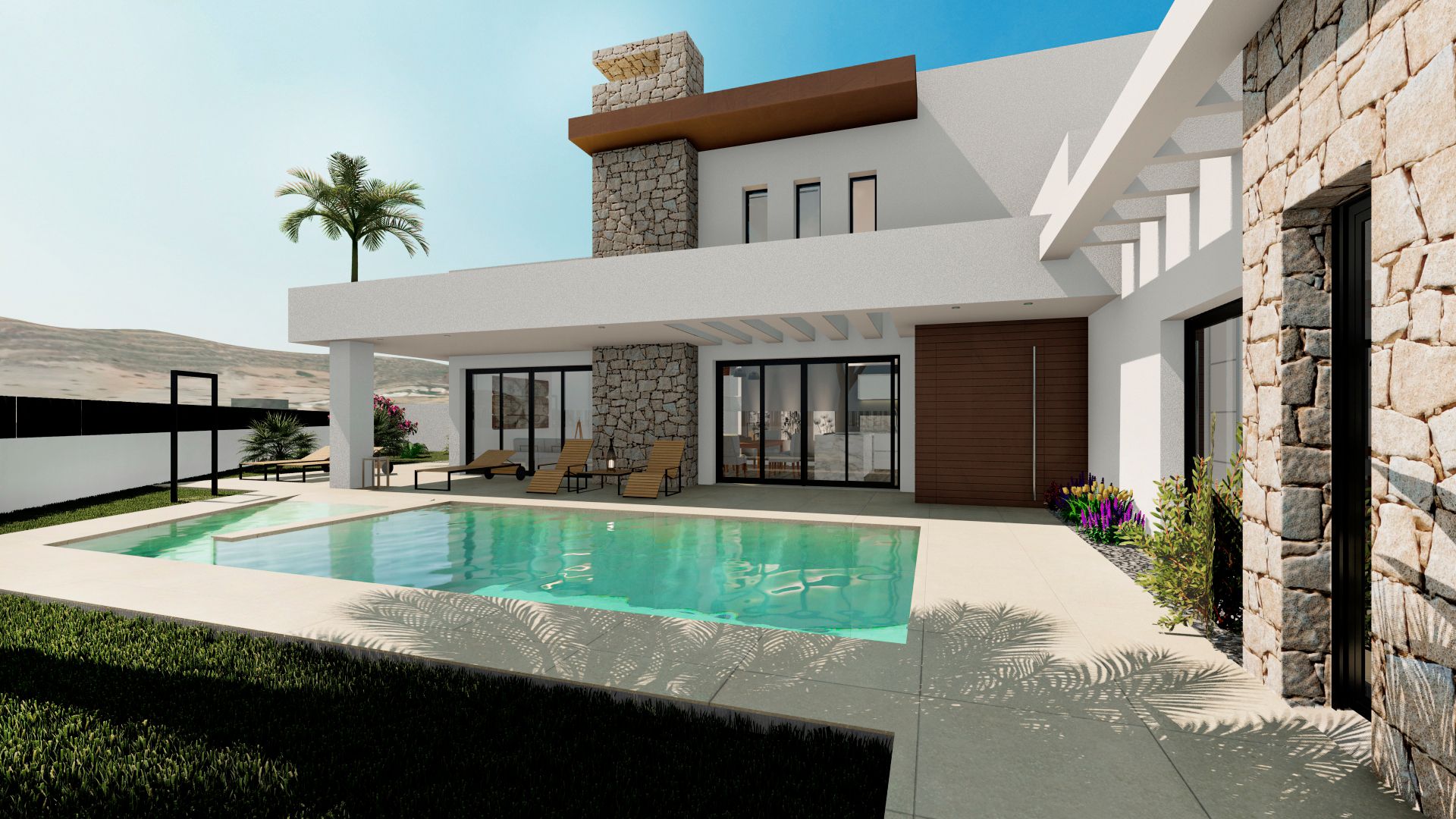 Descripción: La Vivienda Unifamiliar en Limaria destaca por su luminosidad y diseño elegante. Sus ventanales bañan de luz natural cada espacio y su lujoso patio con piscina e iluminación nocturna crea un ambiente exclusivo. El interior, minimalista y moderno, combina suelos entarimados con paredes blancas para un estilo sofisticado.